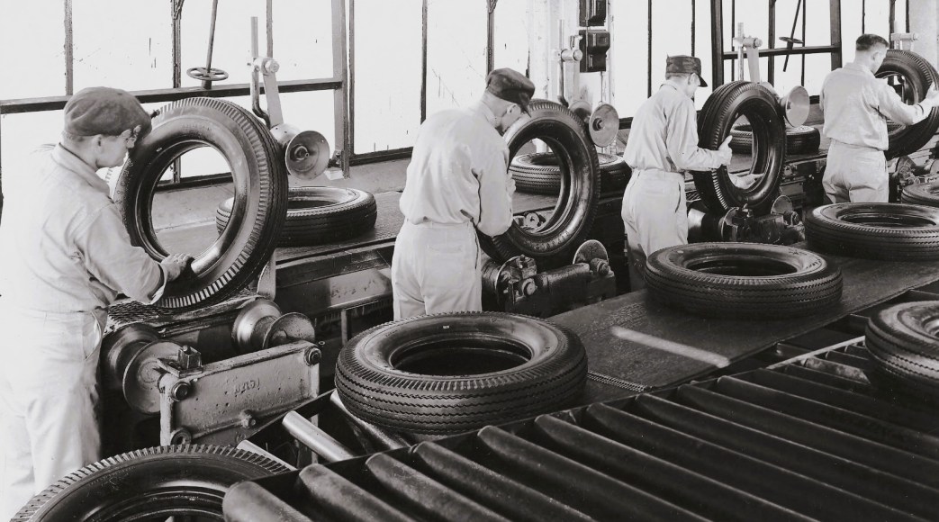 Tire building began as a “skilled” trade. It soon became a machine process with the worker tending the machine. Skilled labor was replaced by semi-skilled and unskilled labor. Foreigners and Negroes shouldered out native white workers who insisted on a higher standard of living. The make-up of Akron’s population at the time of the last census (1920) is a striking picture of the forces at work there. White persons born in the United States of native parents made up 60% of the population; white persons born of foreign parents 18%; foreign-born persons 20%; Negroes 2%. There were 121,167 males and 87,266 females in the Akron population—141 men for each 100 women. Akron rubber workers have been exploited more and more intensively as the years passed. Tire building is one of the industries that has shown an immense increase in productivity per man in recent years. Since the war employment in the industry had increased 7 per cent while the total output has increased 28 per cent, or four times as much as the increase in the number of workers employed.