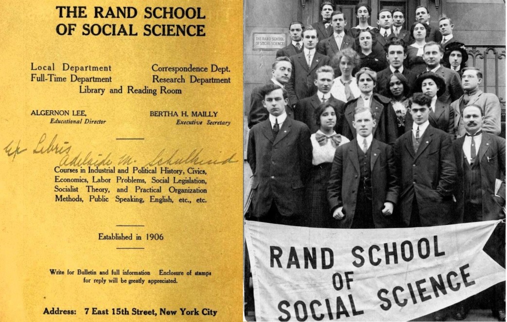 In 1906, when the Rand School of Social Science was founded, it had a couple of little rooms in one of the decayed brown-stone houses on East 19th Street, near Third Avenue. There weren’t many students, but they were earnest, hard-working, and eager. The faculty consisted of two: or three men, one of whom also acted as executive secretary of the school.