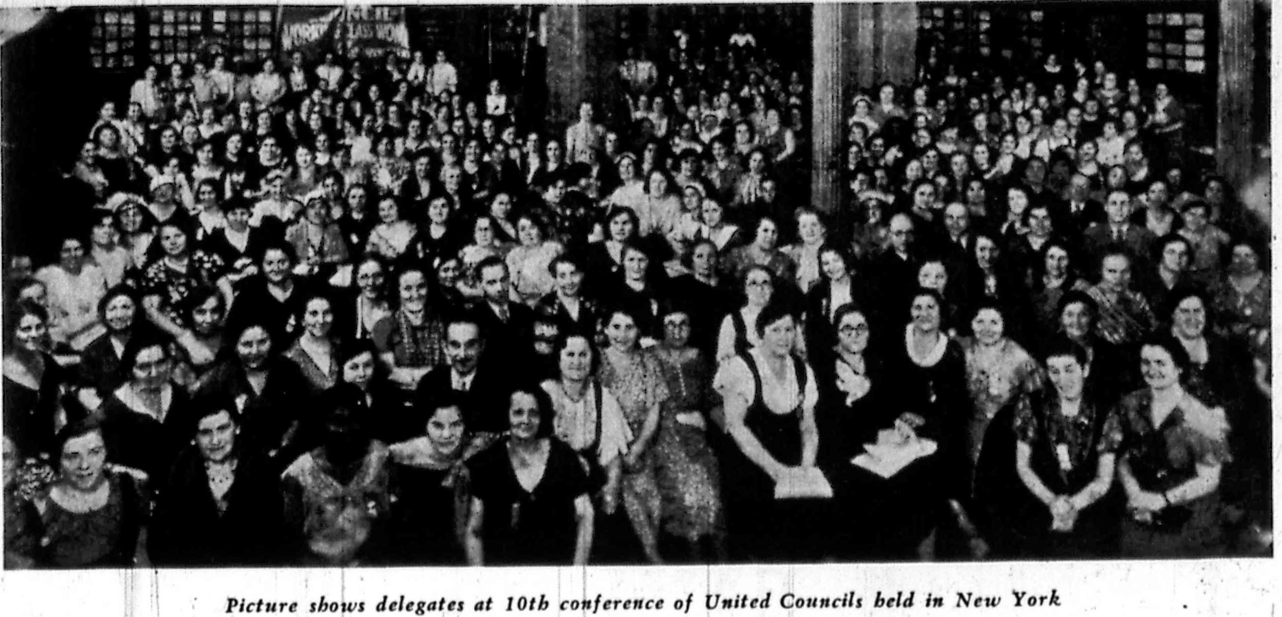 The role of the United Councils of Working Class Women in this strike was a very important one. When the call of the Strike Committee issued a call for assistance, it was met with a quick response. We immediately understood the importance of this strike. Our committees reported to the strike halls for all sorts of work, such as picketing, collecting food for the strikers, which was necessary from the first day of the strike because of the impoverished conditions of the workers even when they work. Our members also helped in preparing foods. Special credit is due to Council No. 3 for splendid work as far as feeding the strikers is concerned, although all the other councils in the Bronx section did their best.