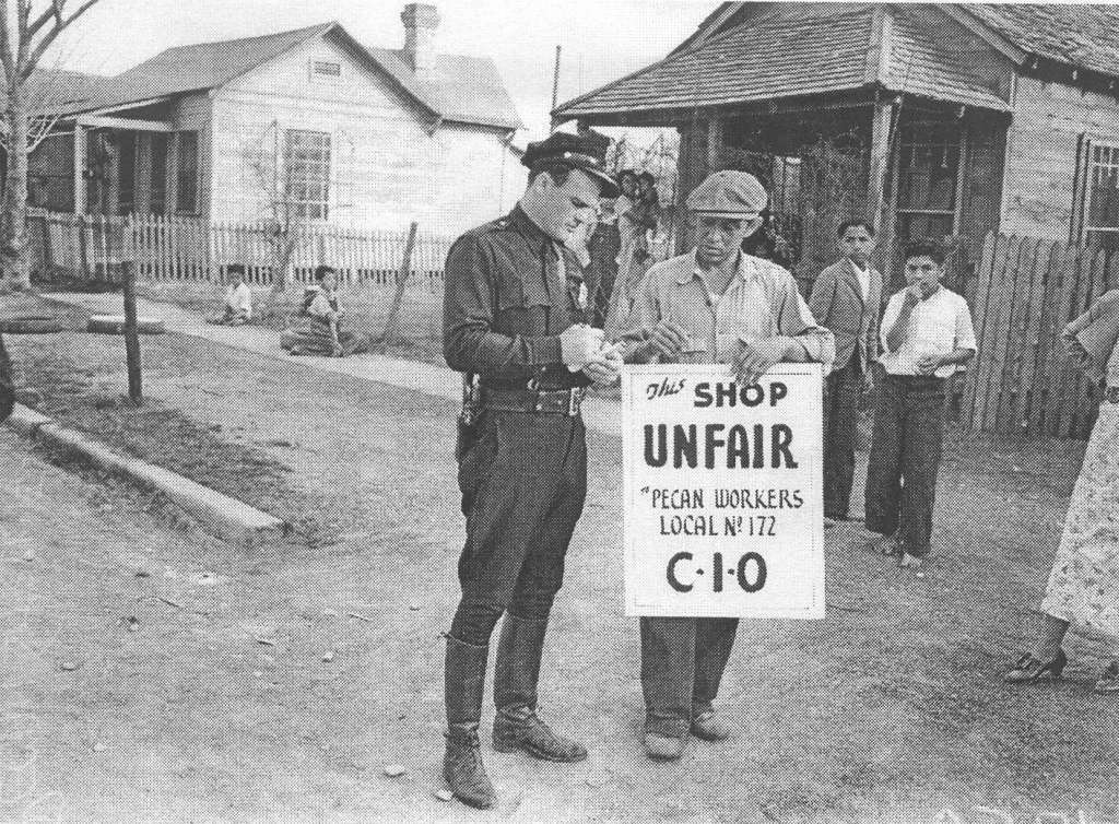 No worker ‘takes’ a job from another worker. Workers sell their labor, and it is the capitalist who buys and employs that labor. And damn near the whole of the class war is so they can purchase it at the cheapest costs to themselves. Here, the Southern Pecan Shelling Co. of San Antonio uses white chauvinism and draconian immigration laws to help take advantage of refugees from U.S.-inspired unrest in Mexico to secure a day’s work for pennies. And then there is the bosses short-weighing and graft with the contractors to wring more of their bread from the sweat of other people’s faces. Four years after this article, in 1938, 12,000 San Antonio-area pecan shellers would strike with the new CIO and win, placing shellers under the new minimum wage. In response a process of mechanization was introduced by the companies that would reduce the workforce by over 80% within five years. The class war.