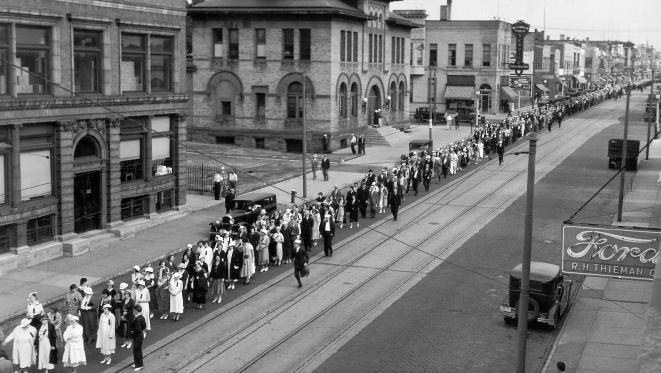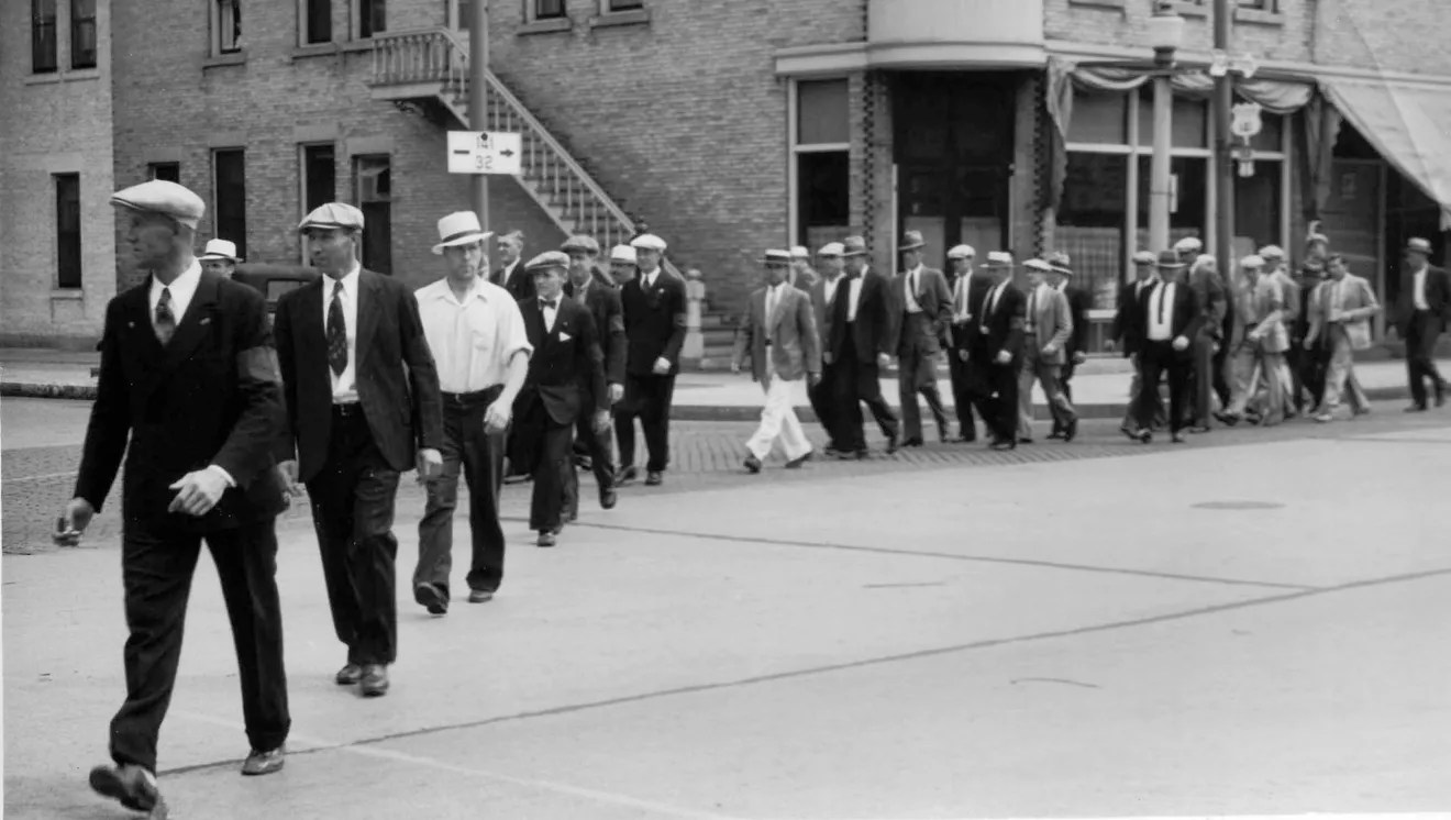 Part of the labor uprising that swept the country in the Summer of ’34, high drama as workers in the company town of Kohler, Wisconsin strike against their master, a former governor, to demand a union. Police and thugs would murder pickets Lee Wakefield and Henry Engelman, shooting dozens more, on July 27, 1934.