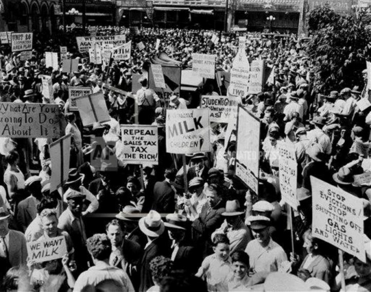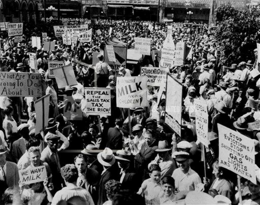 Demand that the rich be taxed to pay for public works and to support the unemployed.