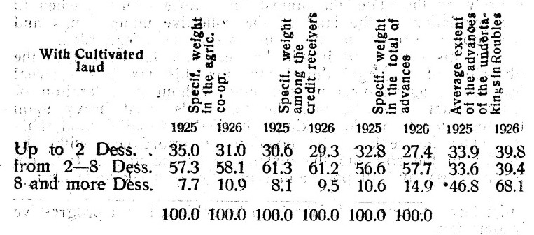 A comparison of the data of 1925 and 1926 shows an increased participation on the part of the well-to-do peasants, both with respect to numbers, and to the extent of the credits granted them.