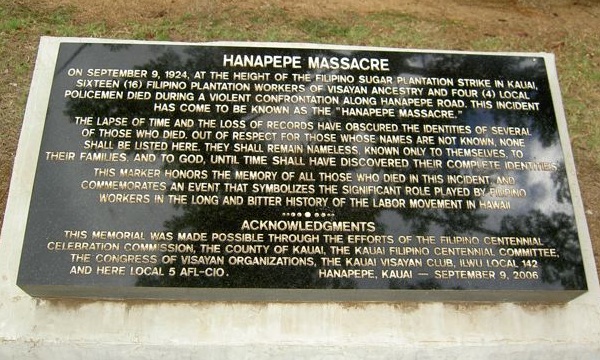The the story of September 9, 1924’s Hanapēpē Massacre of Filipino sugar strikers on Kauai in which sixteen workers were and four police as the pickets defended themselves.