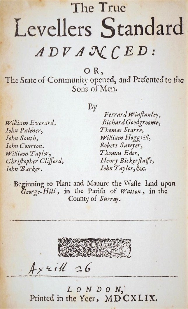 Gerrard Winstanley, one of the most outstanding, transcendent non-Marxist exponents of communism ever to write in words of English, pens the world-changing program of The True Levellers, as the Diggers called themselves. In that revolutionary year of 1649, the English Levellers limited themselves to political equality; the True Levellers demanded, and practiced, social equality–communism.