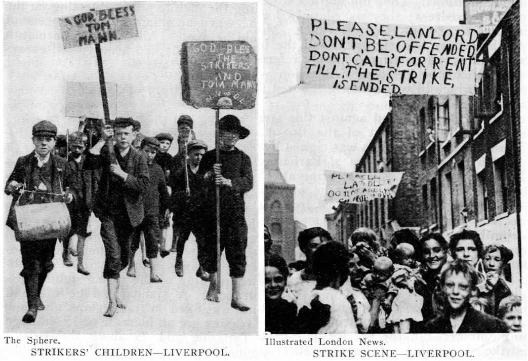 The papers had had large headings of “Rioting of Strikers in Liverpool,” but so far every “one questioned here about this has denied it. We even asked the police if there had been trouble from the strikers. “No,” said they, “it is the sectarians.” The “sectarians” by way of explanation, are the Orangemen on one side and the Catholics on the other, who improve every opportunity to shower bricks at each other. It was against such a mob that the shooting of Tuesday the 15th occurred and not against the strikers. The truncheon charge of Sunday was absolutely unwarranted. The police dashed out without any warning from the Lime street railway station and attacked a