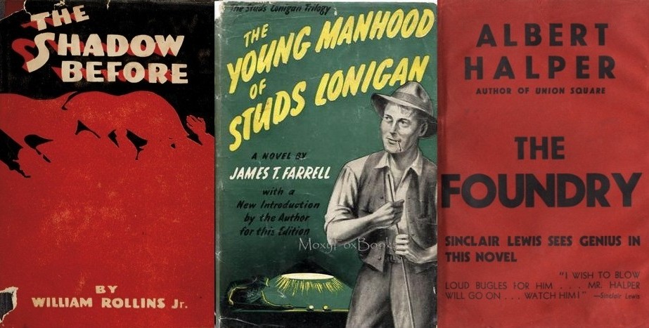 The revolutionary novels deserve detailed consideration, because they have attracted so much attention, and they lend themselves to it. Here are the novels published in 1934 by avowed revolutionaries or close sympathizers: Parched Earth, by Arnold B. Armstrong; The Shadow Before, by William Rollins, Jr. The Last Pioneers, by Melvin Levy; The Land of Plenty, by Robert Cantwell; The Great One, by Henry Hart; The Death Ship, by B. Traven; The Young Manhood of Studs Lonigan, by James Farrell; Slow Vision, by Maxwell Bodenheim; A House on a Street, by Dale Curran; The Foundry, by Albert Halper; Those Who Perish, by Edward Dahlberg; The Death and Birth of David Markand, by Waldo Frank; Babouk, by Guy Endore; The Executioner Waits, by Josephine Herbst; and You Can’t Sleep Here, by Edward Newhouse.