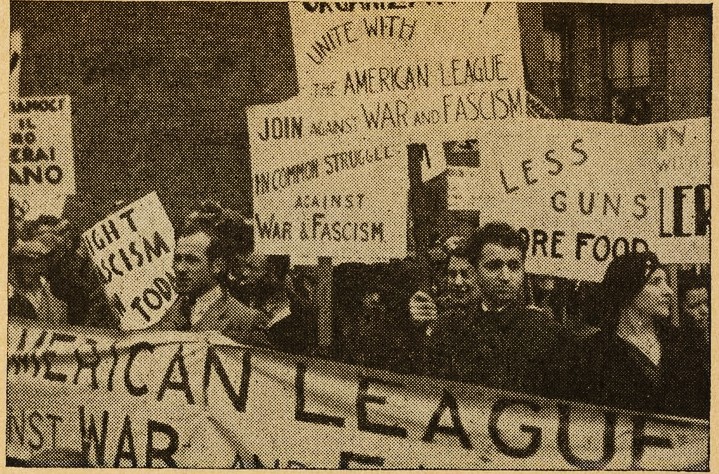 FIGHT Against War and Fascism was the monthly newspaper of the broad-based, but Communist-inspired, American League Against War and Fascism formed in 1933 as Nazism came to power in Germany. The paper and the League attracted fairly wide support and hosted many events in the 1930s. In 1937, reflecting the Popular Front turn, the name of the group was changed to the American League for Peace and Democracy and the journal to The Fight for Peace and Democracy. Both the paper and the organization closed in the wake of 1939’s Molotov–Ribbentrop Pact.