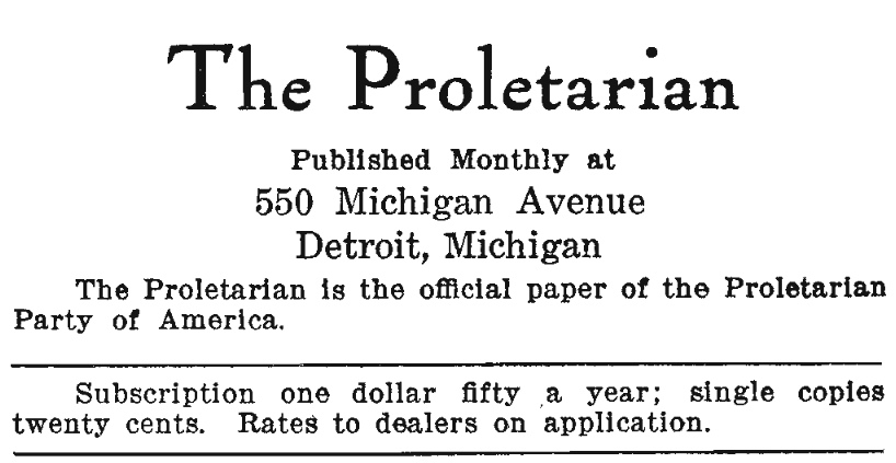 It was the time when the Communist Party and the Communist Labor Party had gone “underground.” The Proletarian Party was then the only open and avowed Communist Party in America. It was not easy to operate, but despite the difficulties encountered, the party engaged actively in communist propaganda and educational work.