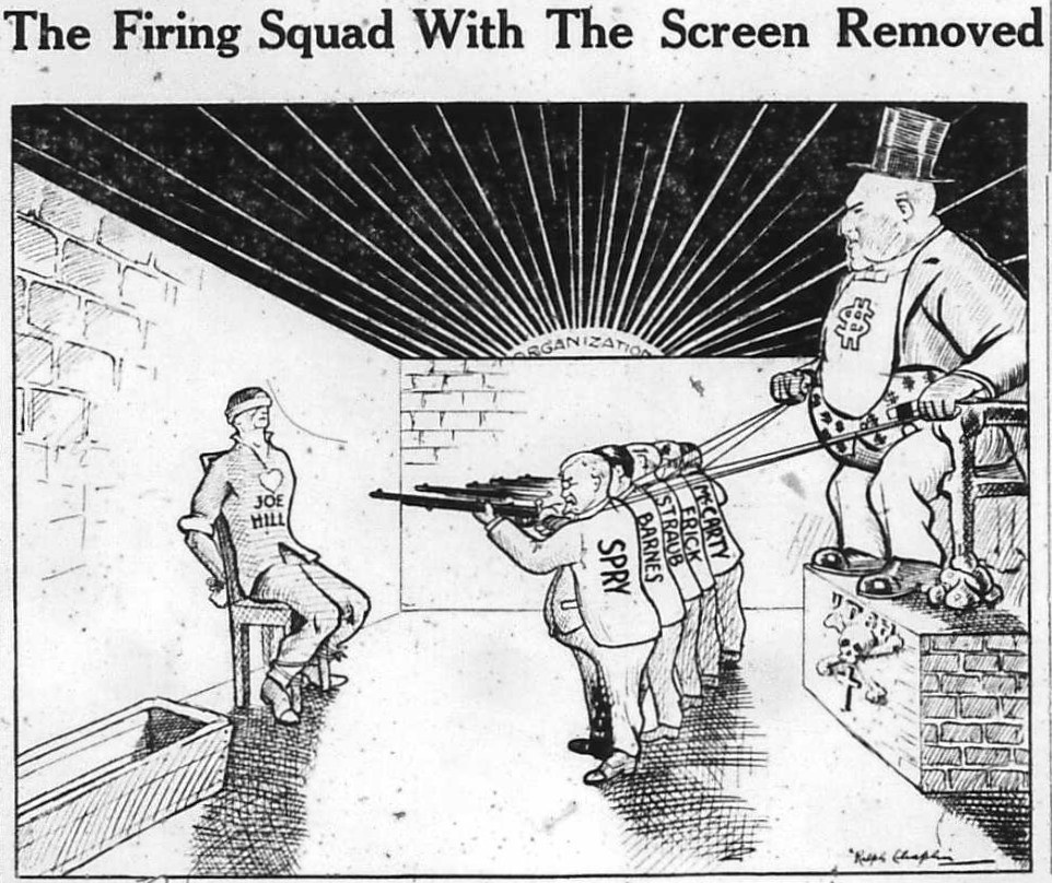 The “legalized” murder of Joe Hill on an unproven charge, in the teeth of the protests of the “Great American Federation of Labor” in convention assembled, and regardless of the direct appeals of both a minister of a foreign power and the President of the United States himself, alone is enough to stamp it with the same everlasting infamy that marks the Roman Catholic Church for its murder of Francisco Ferrer–acts which shall make the names of these two institutions that profess religion and piety, bywords of obloquy that men shall spit from their mouths with deadly loathing, so long as human tongues can tell the story of two unspeakable crimes.