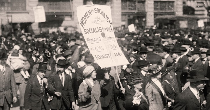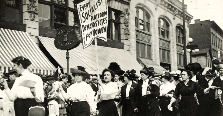 The Socialist party is the political representative of the working class. Since the working class consists of women as well as men, since women, in fact, form a large and ever increasing proportion of the working class, the Socialist party stands prepared to fight the woman’s battle as valiantly, an unflinchingly as the workingman’s. To remove the bonds that hold the working woman in double slavery, to combat the crying evils that today make woman’s work a curse instead of a blessing, to give women political freedom as a means of winning economic freedom, it for this that the Socialist party demands votes for women.