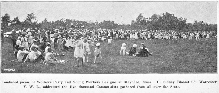 The Minneapolis and St. Paul leagues held a joint meeting for Comrade John Williamson and discussed league problems. Williamson spoke for the league at an open air meeting where Magnus Johnson, Senator elected on the Farmer-Labor Party ticket, also spoke. The leagues united also on a hike on July 22, meeting at Fort Snelling (naturally looking over future Soviet arsenals). Their songs attracted a road construction gang nearby who came over and joined in the singing of the revolutionary songs. Minneapolis has a children’s class and the comrades ask for more material, which we hope to be able later to furnish for all. St. Paul did well in the Day’s Wage campaign.