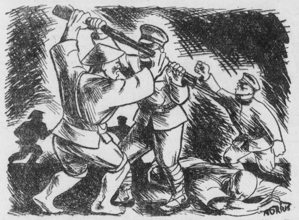 THE enemy troops heard these slogans, more deadly than bullets. What kind of war was this? they asked one another. They had been sent to destroy “bandits,” but instead they found themselves fighting peasants and workers in every village or town, and an army of guerrilla fighters made up of workers and peasants. Themselves poor peasants who had joined the army to earn their rice, they heard the cries, “Land to the peasants and soldiers!” They had been sent into a war which they thought to be like all others they would not shoot to kill, and the enemy would not shoot to kill. But here faced an Army that fought with deadly earnestness, every bullet finding a man. Such a war had never been heard of by the ears of man! Sullenly, confused, they obeyed the command of their officers, but fearfully they looked at each stone, each tree, each hut, each grave mound. Some fired into the air to make a noise that would please their landlord-officers. Some just picked up their rifles and bullets and went over to the Reds, and others ran.