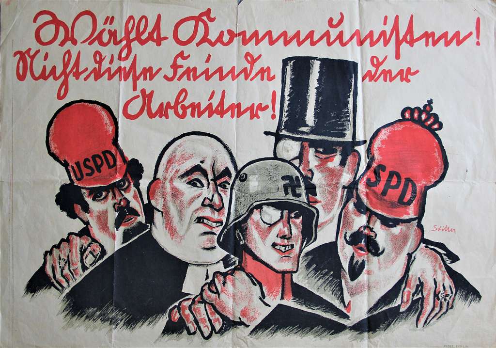 The German Nationalists have had to yield up their most active elements to the various kinds of fatherland, national, and Pan-German organizations, which seemed to promise more speedy success to the reactionary mass by their fascist and military methods. In these fascist antisemitic parties which, on the other hand, combat each other most furiously, often because of personal jealousy, one cannot see how things are. Here are the names of only a few of the Fascist Nationalist (völkische) parties who are participating in the election with their own candidates: German People’s Freedom Party, German Social Party, German Party in Baden, (National Socialist).