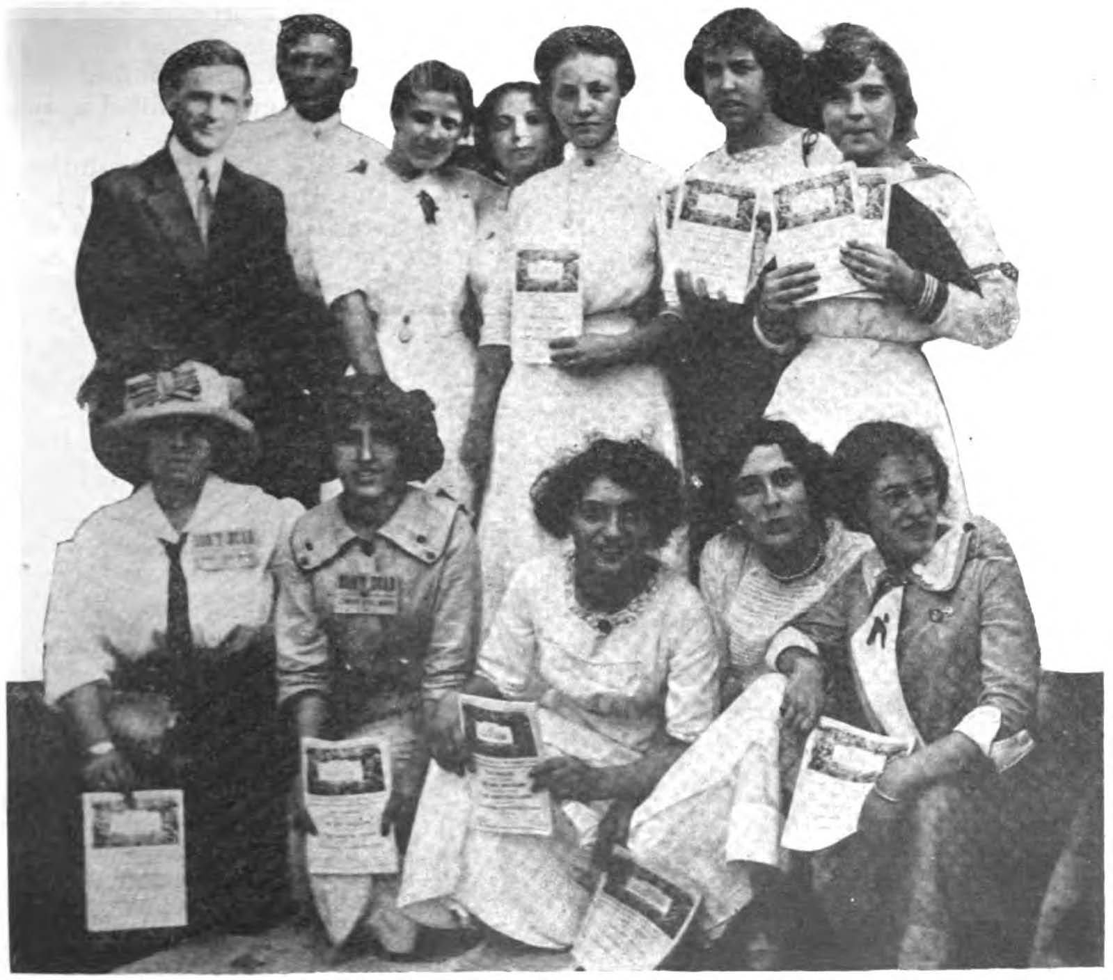 The girls who have been especially trained in literature hustling seized upon the assembling of these thousands to go along the street and sell JUSTICE on the street and sub-cards instead of marching in a procession.