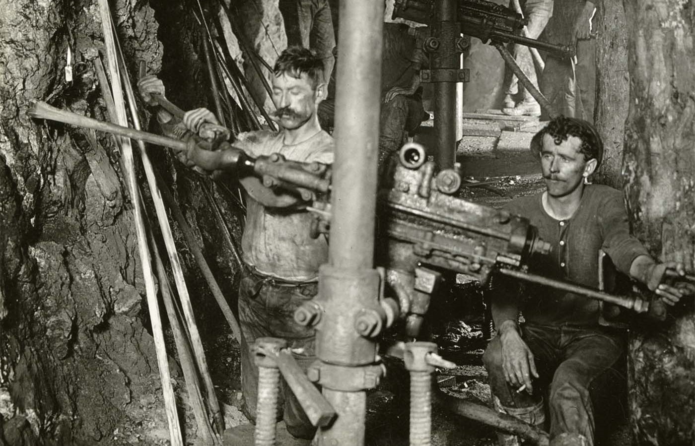 My next experience was on the 2,200-foot level of the Montain Con. Here we were two thousand two hundred feet below the surface of the earth, no possible way of getting air, other than compressed air forced to us through a small two-inch pipe. This place was a veritable inferno, a human crematory. Imagine yourself in a steam bath where the atmosphere has suddenly become over-laden with hot steam and you find yourself gasping for breath before you can reach the open air, (as is often the case at some of our hot spring sanatoriums) and you will be able to form some conception of the feeling one has while working in a place of this kind. It is often the case that one feels so faint and sick, that it is impossible to eat at dinner hour.