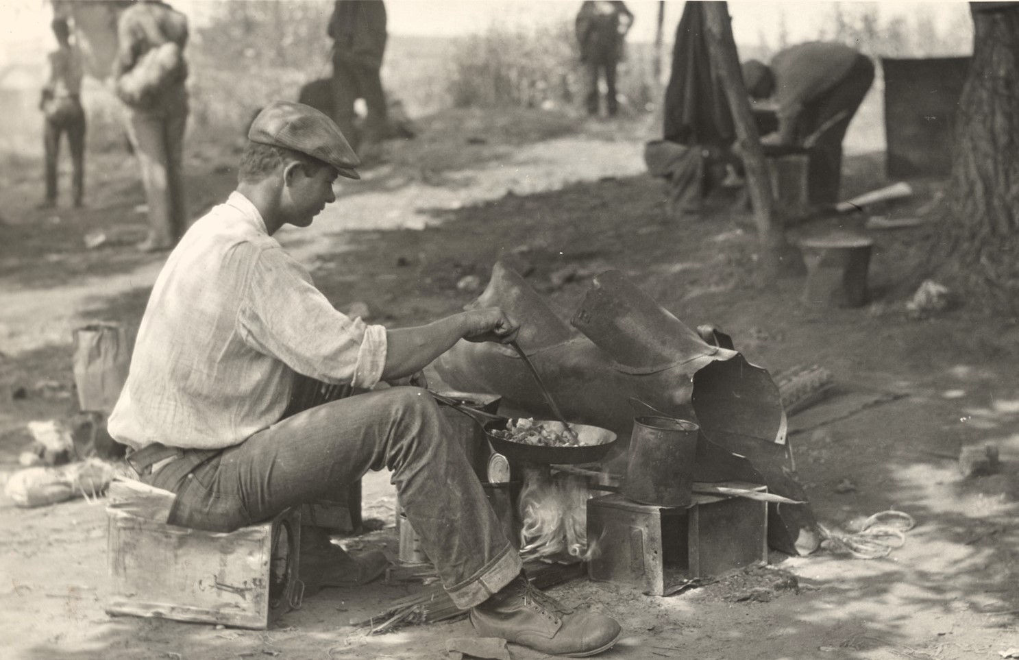 This is the way that most of the harvest hands exist. What a reward for the reapers of the golden harvest–meager food, cooked and eaten out of tin cans; sleeping in filthy box cars, wearing dirty and ragged clothes, denied most of the necessities and all of the comforts and luxuries of life, denied the company of women, denied life itself.