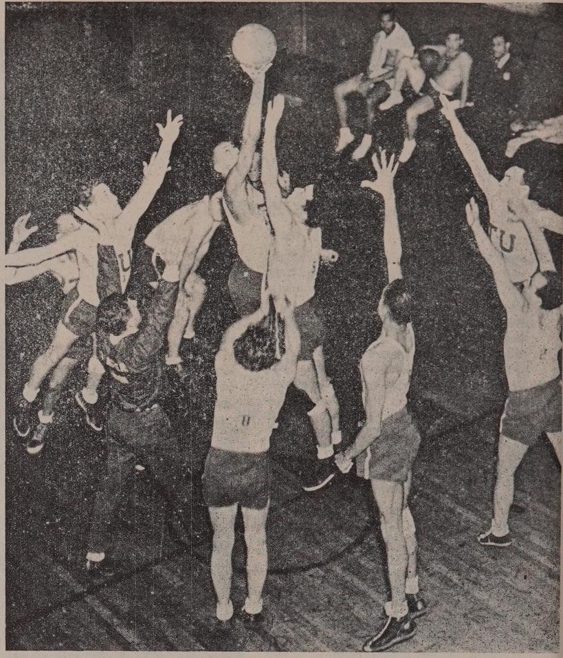 No you’re not in a swanky athletic Club. This is the Union Recreation Center of the Pacific Maritime Federation in San Francisco, and that guy who just intercepted a pass and rang up two points is not a “tired business man” trying to keep his waist line. That’s one of the waterfront boys, fresh from a day on the picket line, showing ’em that a star in union activity can be a star on the basketball floor in his spare time.