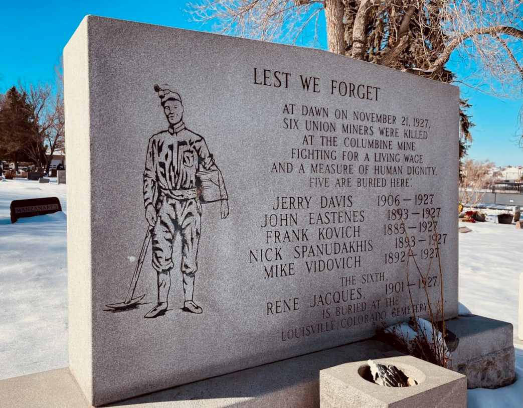 This being the United States, there have been several ‘Columbine Massacres’ On November 21, 1927 in the small town of Serene, Colorado, site of the Columbine Mine, during the Industrial Workers of the World strike against the Rocky Mountain Fuel Company, I.W.W. members Jerry Davis, John Eastenes, Rene Jacques, Frank Kovitch, Nick Spanudakhis, and Mike Vidovitch were murdered by state police and mine guards opening fire into a crowd of strikers. Dozens were wounded. Reports from that day and the Communist Party statement in the massacre.