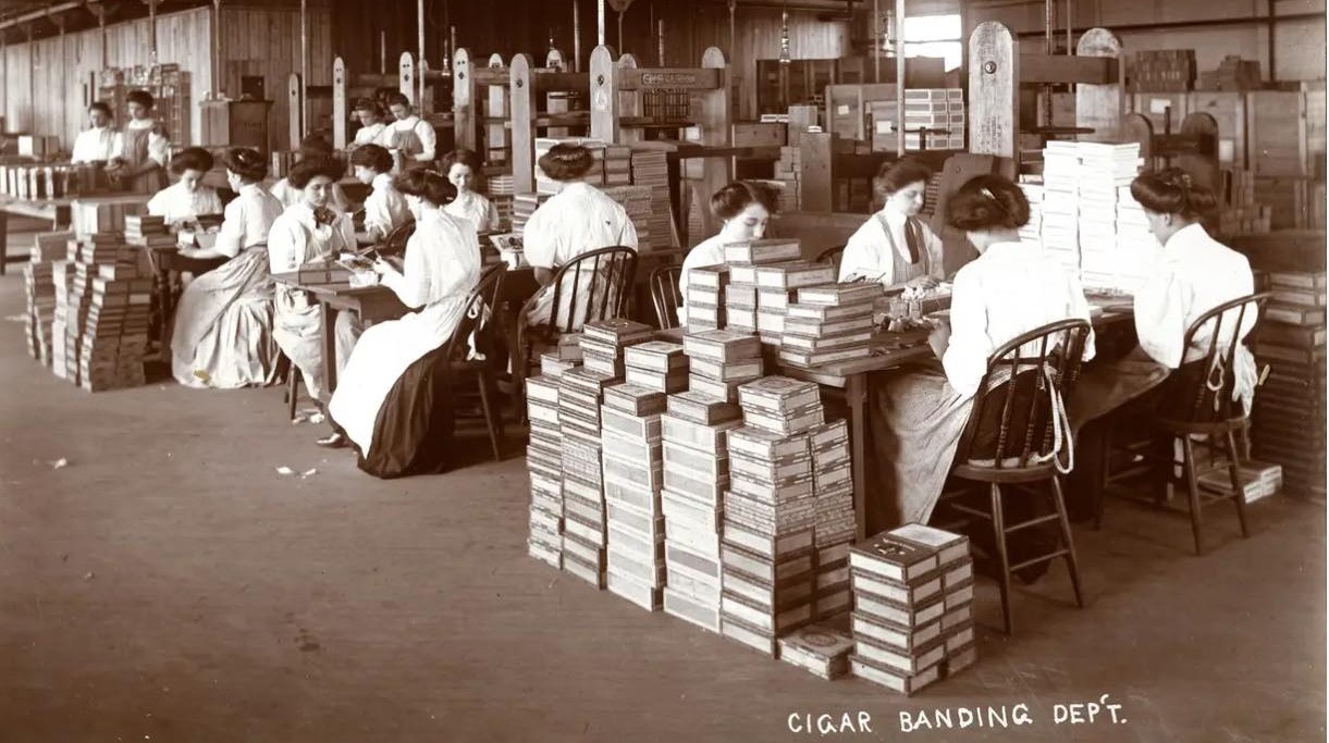This firm employs a whole floor of about 300—14 year old girls. They put the bands on the cigars for $7 or $8 per week.