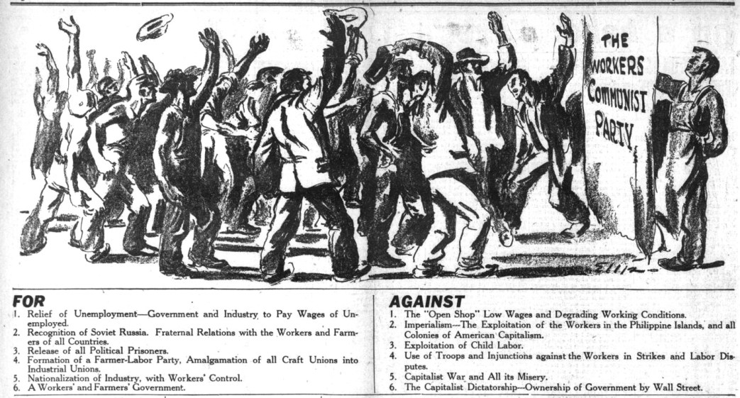 Against the class-collaboration program of LaFollettism the only weapon that will cut deep will be the program of class struggle; against the conception of parliamentary reformism, the only effective slogans will be those that mobilize the masses in the shops and factories for immediate struggle. In such a situation can we expect results from the use of any vague, abstract slogans and middle-of-the-road political organizations? It is absurd to think so. The most powerful weapon that we will have will be our own Workers Party. It was a growing realization of this fact that influenced greatly our decision to enter Communist candidates in the presidential election now upon us.