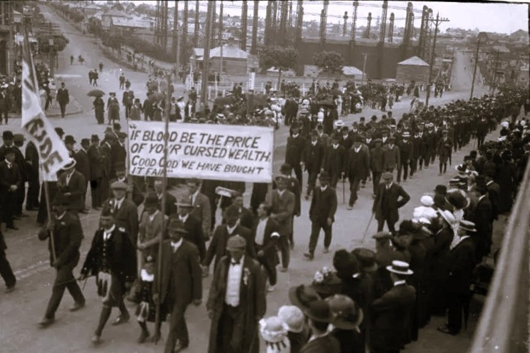 A mental revolution had been working in the year 1913, in the minds of the toilers, the employers during this period had become overbearing and tyrannical in their attitude towards labor. All at once the arbitration doped workers roused themselves from the slumber of 20 years, and there began a gigantic rebellion, the like of which has never been seen before in the Isles of Australasia.