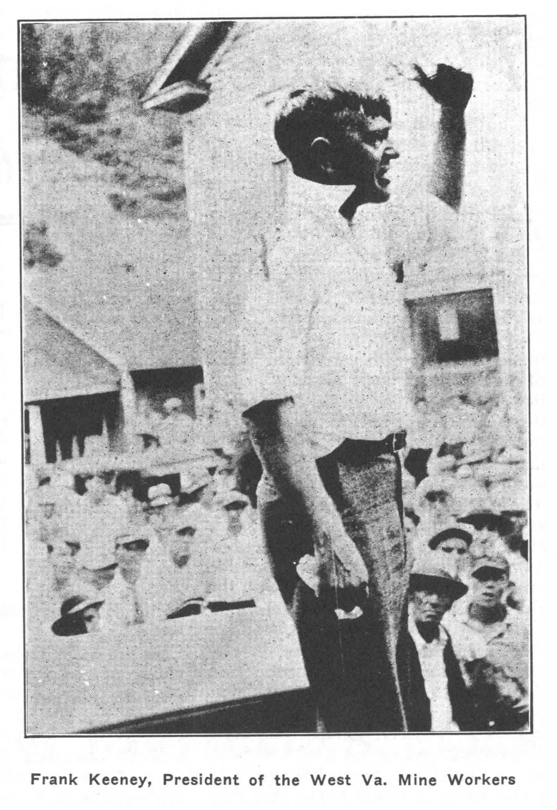 The committee appeared, the crowd surged into the streets, Seacrist mounted the steps and told the story—“and I told him,” Seacrist concluded, “that if the state can’t help us, we are going to help ourselves!’ The crowd cheered and called for Frank Keeney. The president of the West Virginia Mine Workers pushed his way through the mob to the steps. In a speech that will live forever in the memory of coal diggers, Frank Keeney sketched the plight of workers in America. He has lived in the West Virginia coal belt all his life and all of that time he has been struggling with and for the coal diggers. It was an incredible story of human suffering on the part of the miners, of uncanny cruelty from the coal operators, of gross callousness on the part of governments. He reminded the starving people before him that Governor Conley was one of the state executives who had answered an inquiry about hunger from the United States Senate that there was no starvation in West Virginia and he urged the miners to hold their ground. “In the end we shall be fed or we shall go out and take food,” was Keeney’s parting words to his coal diggers. And the miners did hold their ground. All day long they remained at the Capitol. Newspaper reporters darted in and out of the demonstration. The townspeople came to see what all the shouting was about and more miners showed up from the camps. Long before nightfall they were the talk of the town. When it had started, no one thought the demonstration would last more than a few hours, but with a blank refusal of their demands, and their resolution to stay until fed, a dilemma presented itself. The miners had marched away from home expecting to return by nightfall. But when darkness came the demonstration was in full blast. Those who could remained; others went home to lock up the house and bring their families into Charleston.