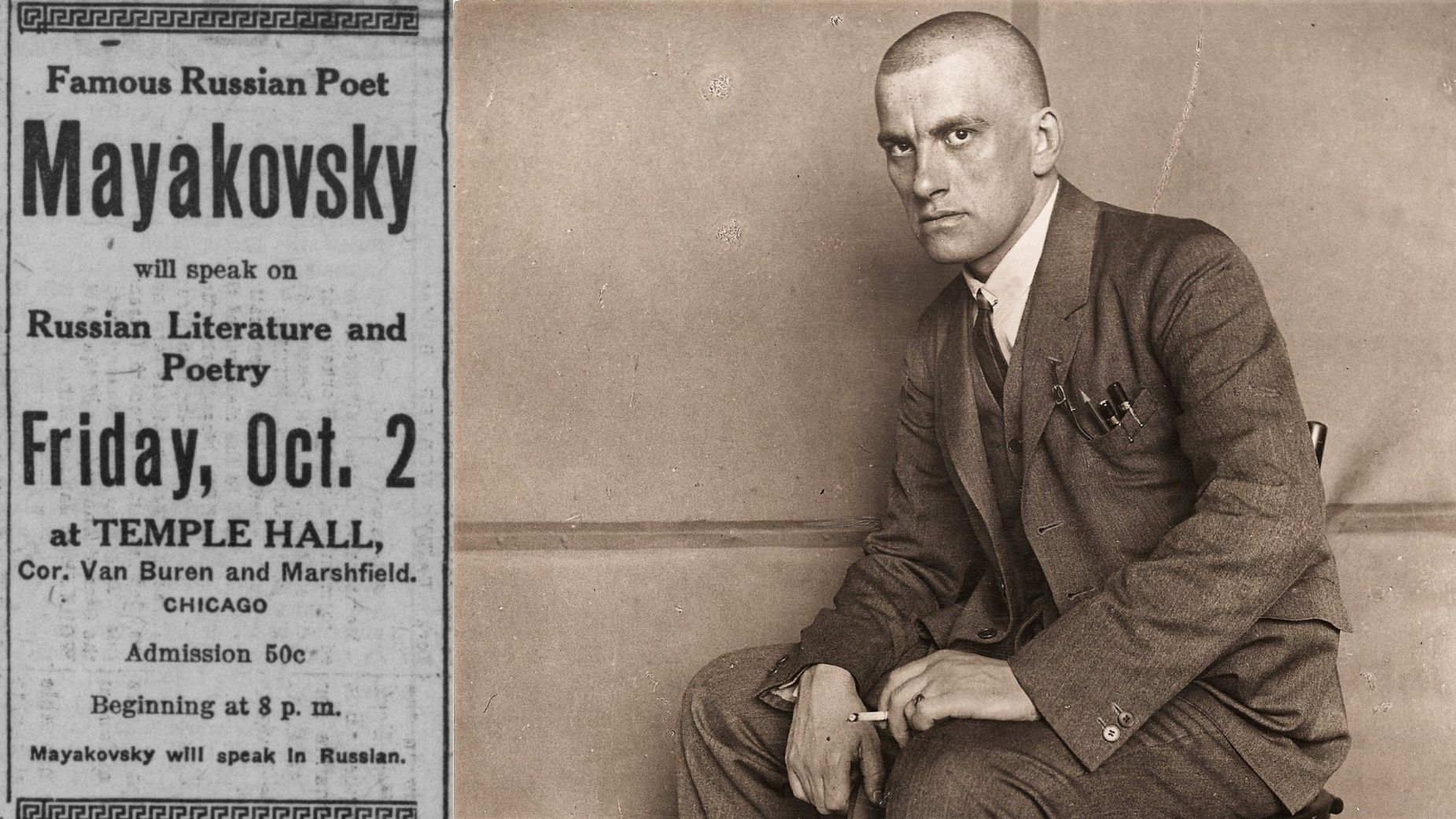 One of the most enthusiastic meetings ever held In the Russian colony of Chicago took place Friday night, Oct. 2, when a crowd of about 1,600 people jammed the Temple Hall to listen to the famous Russian poet, Vladimir Mayakovsky. Before the meeting was over the crowd unanimously voted to invite Comrade Mayakovaky again to Chicago before he leaves this country.