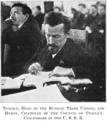 After this comrade Vladimirov gave a report on the details of the tariff and economic policy of the trade Unions. The intense interest roused by comrade Rykov’s speech was shown by several hundred written questions sent up to him before he made his closing speech.