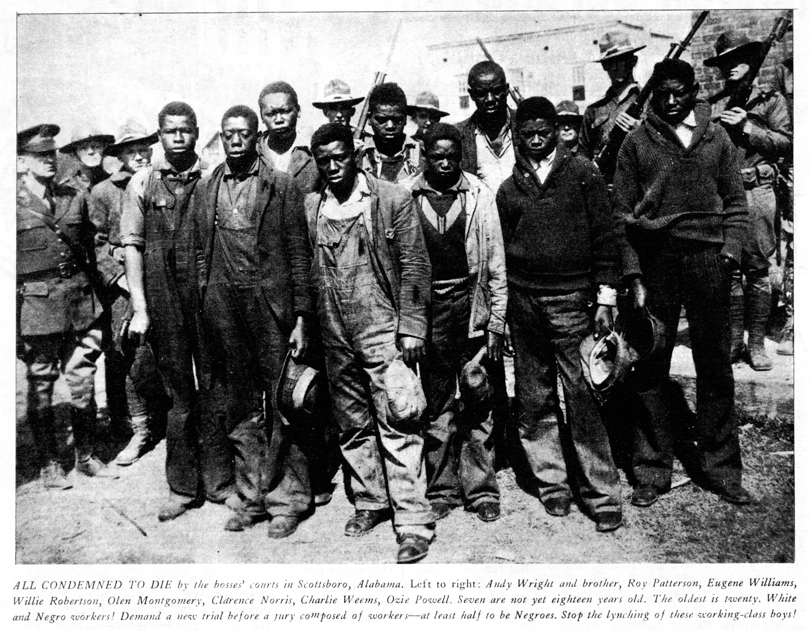 Comrades! Old habits and the weaknesses of a purely propaganda party must be resolutely thrown aside. The saving of the lives and the liberty of the nine Negro youths framed up at Scottsboro can be accomplished only by a movement which has not been stirred into motion before.