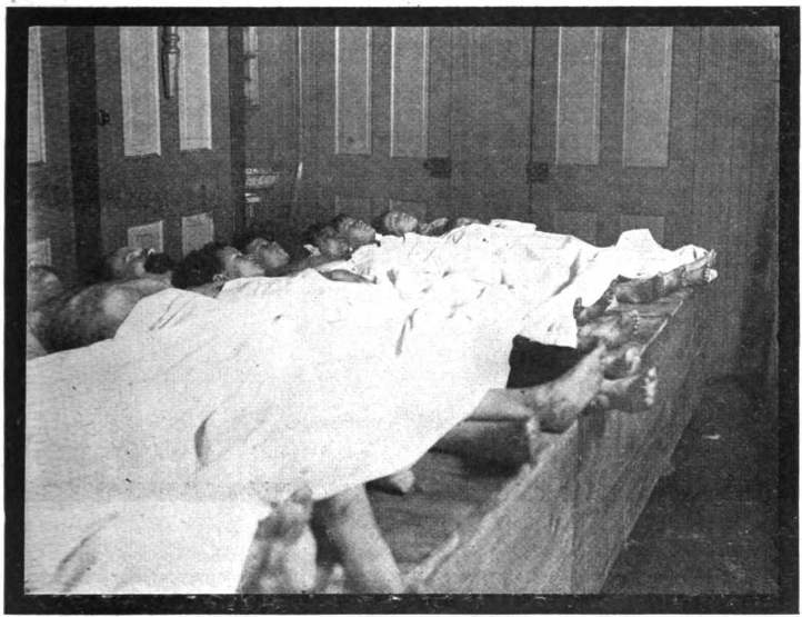 7. Deputies had closed the doors, and thus the work of rescue had to be started from the top, and those in the pile had to stay there so long that they suffocated.