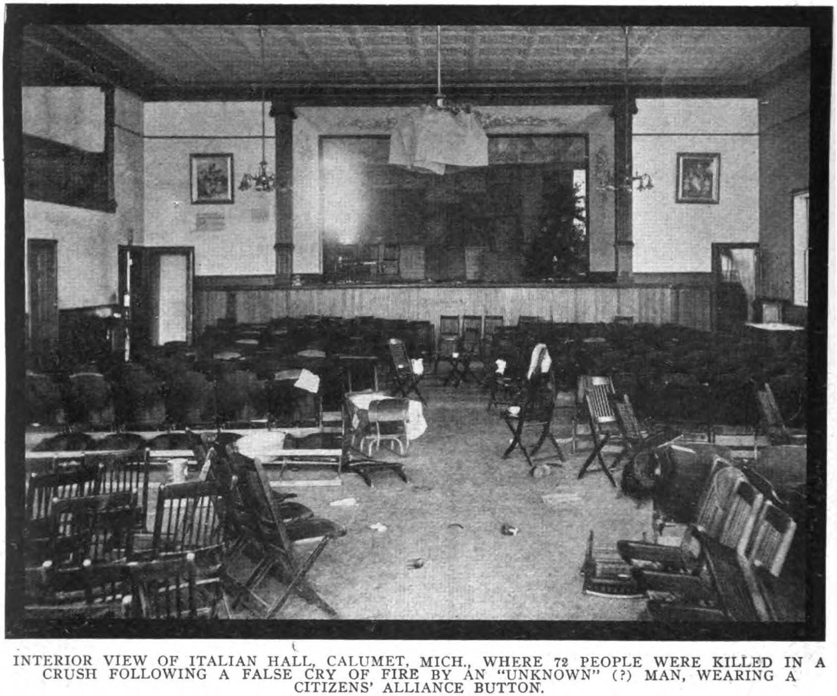 It should surprise no one then to learn that upon this occasion a “mysterious” stranger appeared suddenly in the doorway of Italian Hall with a false cry of “fire!”