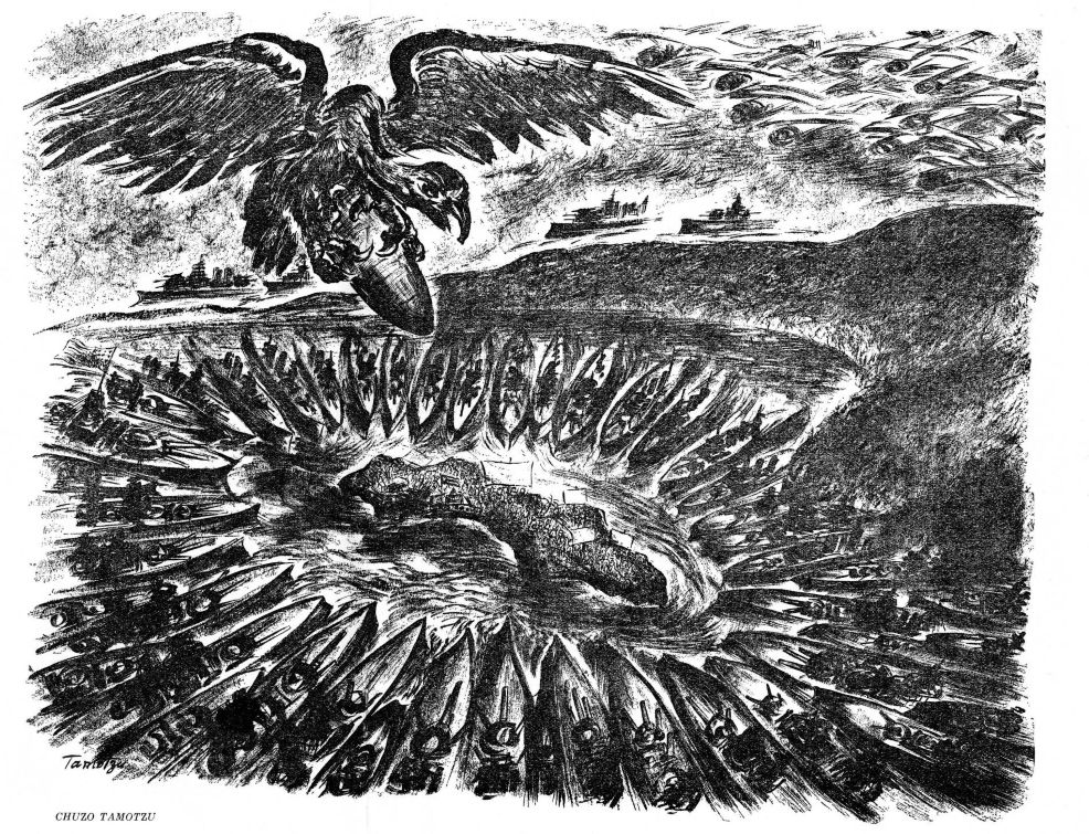 Steadily the tension between the two rival imperialisms has grown. The measure of its progress became apparent to all the world a few months ago, when the Japanese Government let it be known that Japan was no longer prepared to accept the 5:5:3 ratio of naval strength established at the Washington Conference, and at the expiration of the present treaty would insist upon equality with the United States and England. This is countered by an abrupt undertaking in this country to build “up to the full treaty strength.” President Roosevelt’s naval-building program (adopted as part of the “economic recovery program”) creates the certainty of a military and naval budget which in the course of the next few years will approach $750,000,000. From Japan now comes the charge that the United States is engaging in an armament race with her.