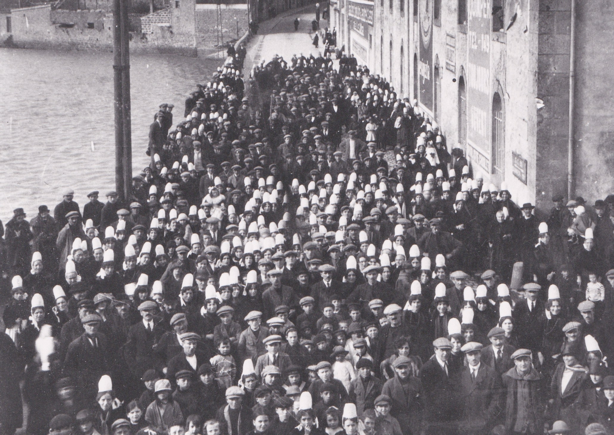 The fight started in three harbours of the district of Penmarch in the South departement of Finistère The cause of the dispute was the sudden reduction of prices paid to the fishermen for the fish caught. For 100 kilogrammes sardines, for which between 1100 to 1200 Francs were paid in 1926, no more than 300 Francs were paid. This meant a reduction of the earnings of the fishermen by not less than 75 per cent.