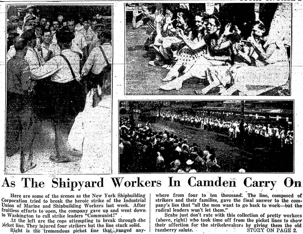 But the bosses trembled when they saw growing a powerful, militant industrial union that would check their greed for more and more battleship profits. Meetings of the American Shipbuilders Council, powerful national employers’ group, decided that the union must be broken. They chose Camden as the strategic point.