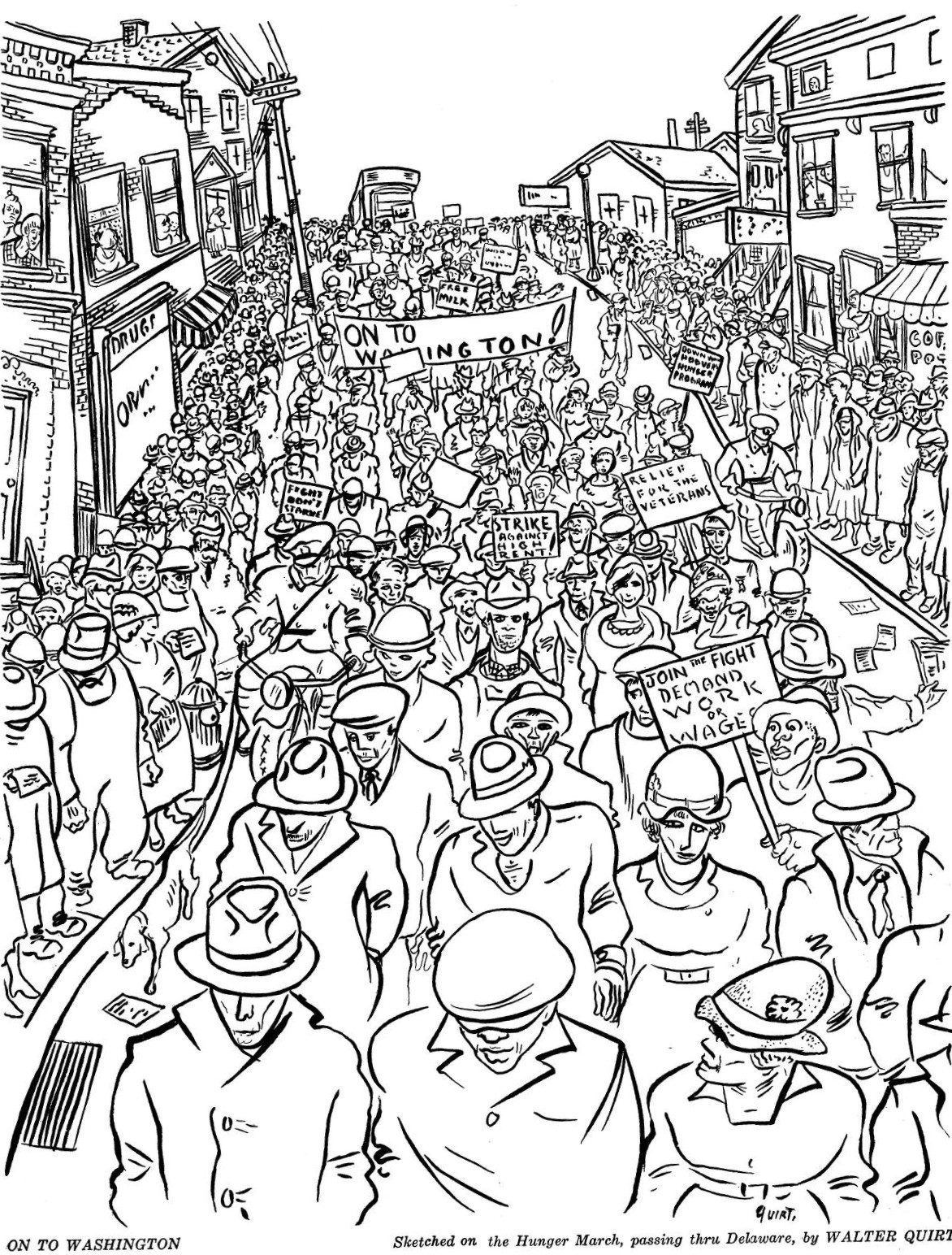 Already, the officials have begun the propaganda that danger and violence are in the air. Everyone knows this is a lie, but Washington is being turned into an armed fortress. It seems certain the old Tory answer will be given to the hungry; they will be sapped, kicked, jailed, slugged, slaughtered and damned. It is sedition to talk about hunger. And liberals and Socialists, will as usual, deplore the demonstration, and advise the unemployed to starve quietly and politely.