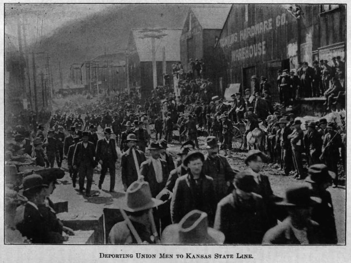 “Later they were loaded on a special train, saluted with several threatening volleys and told that death awaited them if they dared to return. The train carried them to Ridgeway, where they were ordered from the cars and told to shift for themselves. They suffered greatly from the cold. During the eleven-mile walk to Ouray a number almost dropped from exhaustion. What course will be pursued by the Western Federation of Miners has not yet been decided on, or, at least, not made public.”