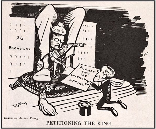 Many reproaches will fall on the heads of the Rockefeller interests for acts of tyranny, exploitation, and contempt of the labor laws of Colorado–acts which are only human at human’s worst. They have gone out to drive back their cattle with a lash. For them that is natural. But I think the cool collecting for this purpose of hundreds of degenerate adventurers in blood from all the slums and vice camps of the earth, arming them with high power rifles, explosive and soft-nosed bullets, and putting them beyond the law in uniforms of the national army, is not natural. It is not human. It is lower, because colder, than the blood-lust of the gunmen themselves.