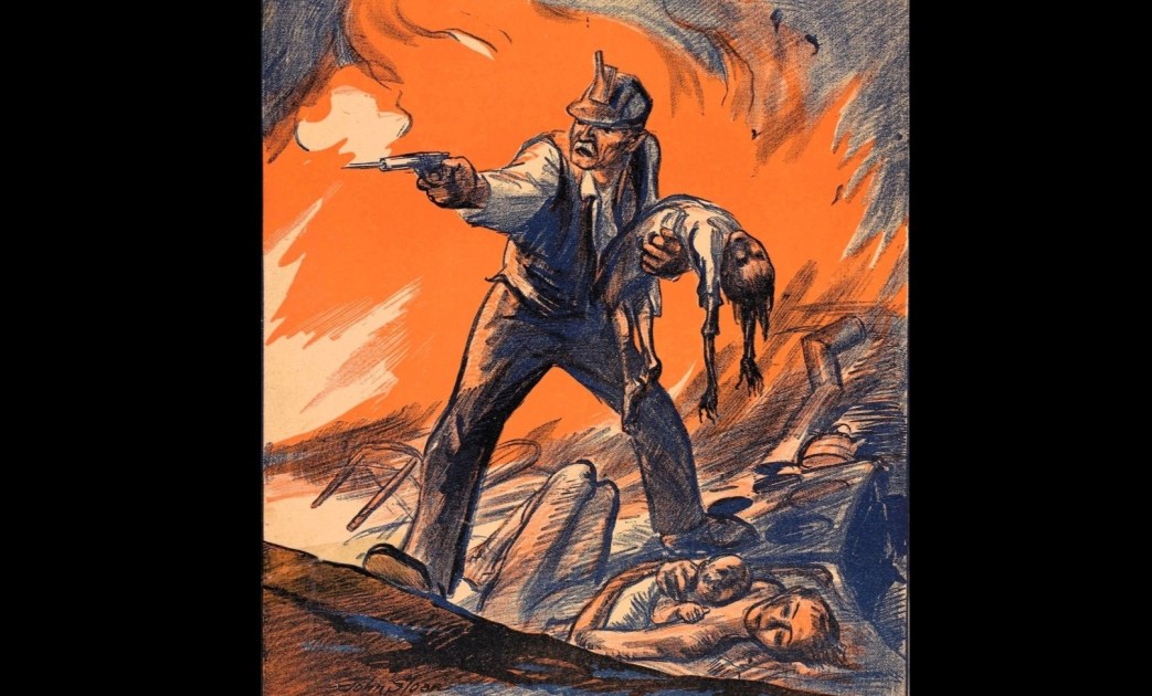 Linderfelt is a man who had his taste of blood in the Philippines, in the Boer War, and with Madero in Mexico. He was second in command of this gang–a lieutenant. “Shoot every son-of-a-bitchin’ thing you see moving!” is what a train-inspector heard him shout at the station. And in that command from that man, brought here by the Rockefeller interests as an expert in human slaughter, you have the whole story of this carnage and its cause.