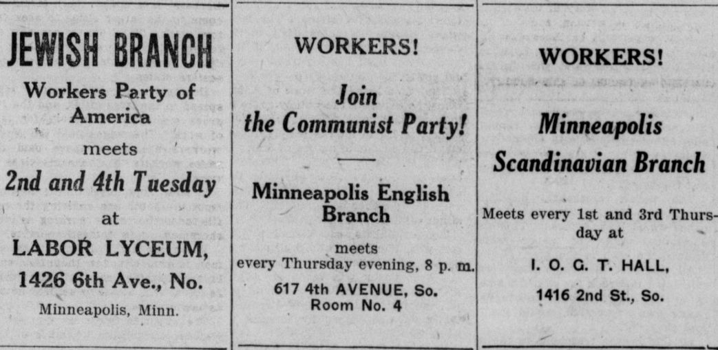 From a special Minneapolis-focused issue of the Daily Worker, a look at the city-wide primary election campaign of the Communist Party in a city with a strong Farmer-Labor and Socialist Party (who won the mayors in 1917) just after the debacle of the 1924 inability between those forces to unite in a Labor Party. The Republican mayor, General Leach, would win reelection handily. The Farmer-Labor Party would win in 1931 and dominate the city for much of that decade. Below are notices on the elections, the candidates, the Party’s program, and local events.
