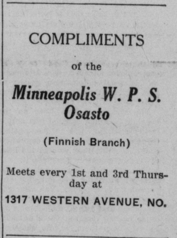 MINNEAPOLIS. Minn., May 7. The Junior group of the Y.W.L. will hold a picnic on Sunday, June 7, at Parker’s Lake, fifteen miles north of Minneapolis. Cars will leave the Finnish Hall, 1317 Western Ave. No., at 9 a.m. in the morning to transport the crowd. Refreshments will be furnished free to all children. A program of games has been arranged to provide entertainment for those present. In the evening the crowd will return to the Finnish Hall where the Finnish women will put on an affair to raise funds to aid the Young Workers’ school which is to open in Superior, Wisconsin, this summer. The Finnish Young Workers are starting a study class to be held every Monday evening at the Finnish Hall with Comrade Margerlte Hslander as instructor.