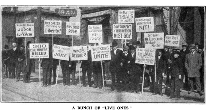 “Resolved, That we realize the fact that decisions of this kind are calculated to bring our courts into ill repute and the disrespect of our best and most law-abiding citizens. We understand that the courts of law can no longer be recognized as temples of justice when such outrages are perpetrated within their walls by some chattels who happen to be sitting on the judicial bench and acting in the name of law and order. Let us remember and never forget that ‘eternal vigilance is the price of liberty.’ Therefore, the workers should awaken to their power and strength, rise up in their might and dethrone this autocrat who poses and parades in the guise of truth, virtue and justice. Let us unfurl our banner to the breeze of industrial liberty, thereby proving to the world that we are the worthy sons of a noble sire. And be it further
