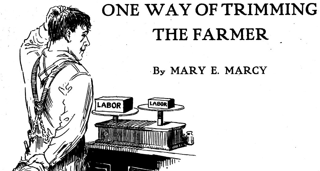 ‘One Way of Trimming the Farmer’ by Mary E. Marcy from International Socialist Review. Vol. 7 No. 1. July, 1916.