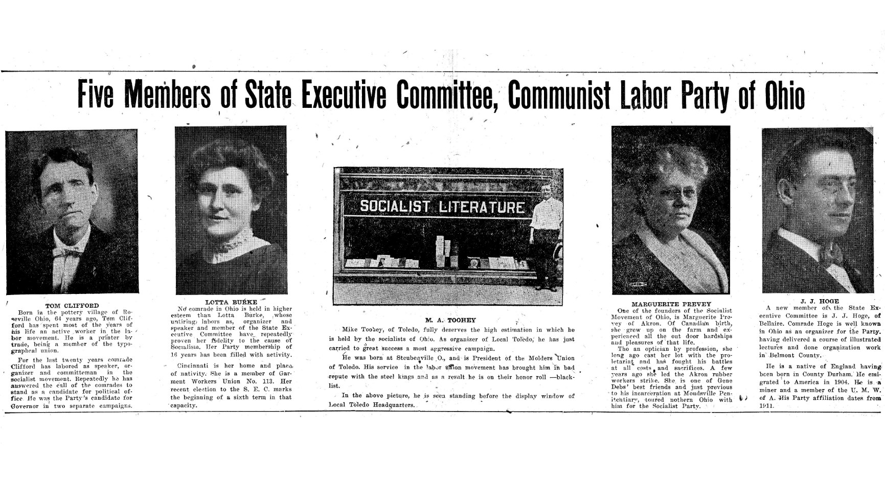 Ohio was among those states whose Socialist Parties were expelled in their entirety from the national Party by the seven-person National Executive for Left Wing heresies in the Summer of 1919. Ground zero for both the Communist and Communist Labor Parties, the minutes of Ohio’s founding C.L.P. meeting held in Akron as well as a convention report from the Salem delegate are printed below.