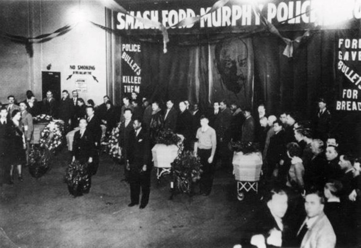 Two nights after the massacre Ford young worker got up at mass meeting and said: “I work at Fords. I wonder what Ford would think of me speaking here like this but I don’t care. I know I am going to be laid off and I am going to raise hell before I do.”