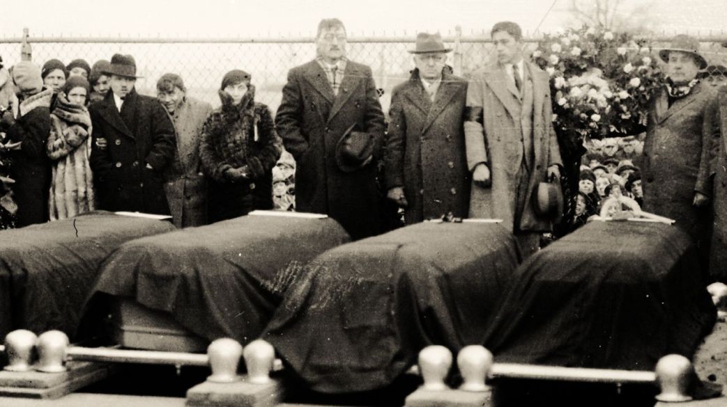 DETROIT, Mich. As the bodies of York, Bussell, Lenny and Debruske were lowered into their graves, over-looking the scene of the Ford Massacre, 70,000 workers who had followed the funeral to the cemetery pledged themselves to a renewal and a strengthening of their militant activity against the forces which had murdered the 19-year-old Y.C.L. organizer and his three comrades.