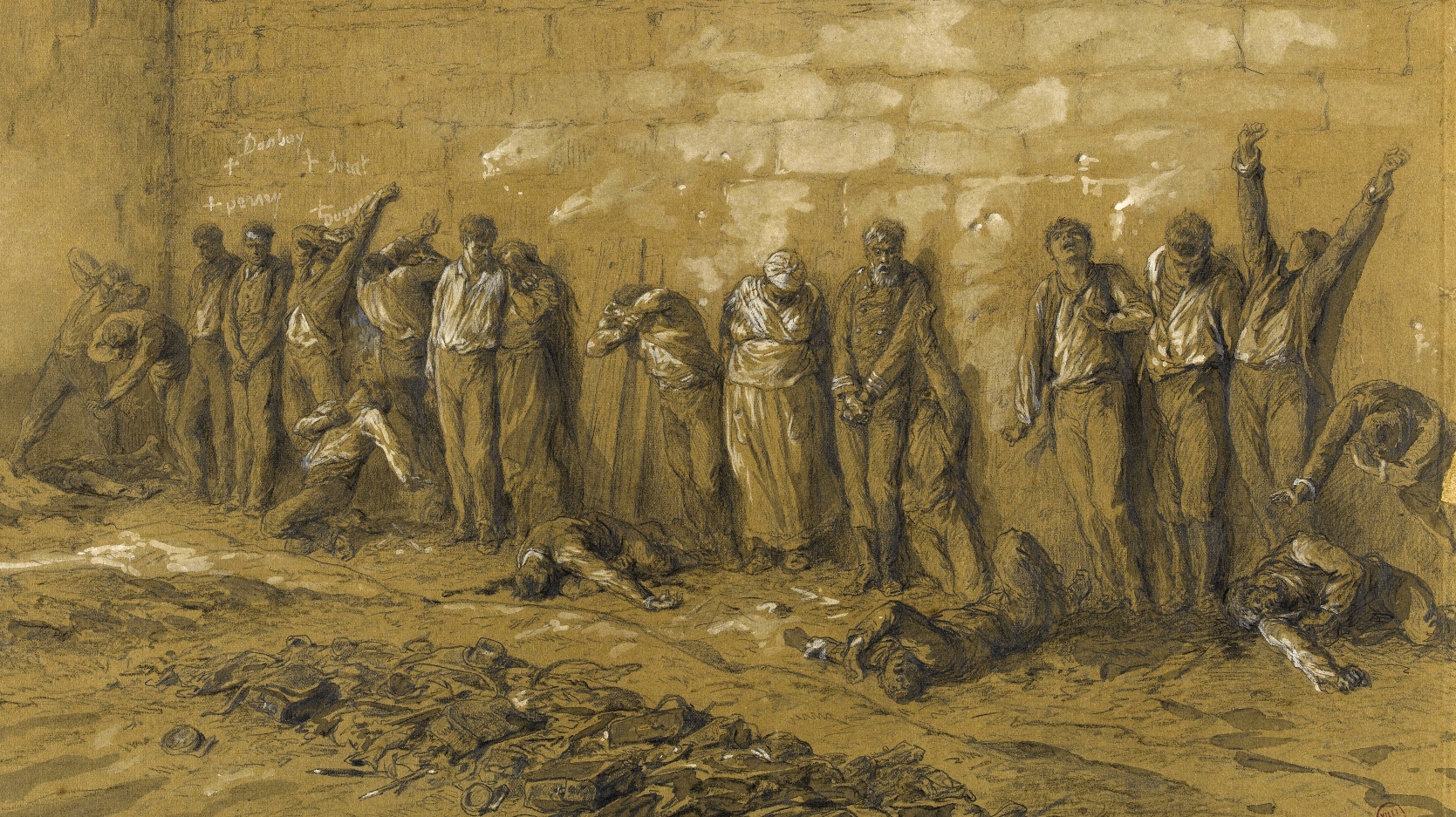 Immediately upon their entry into Paris, the Versaillese troops organised a massacre. The soldiers had orders, which were executed, to kill at once all who surrendered with arms in their hands. They murdered, moreover, anyone whom casual suspicions or interested denunciations indicated. Crowds of idle passers-by were penned together, searched and ordered to show their hands. Any black marks on the palm which might be taken to be powder stains were sufficient evidence for execution. Any man who had retained any portion of the National Guard clothing was shot. (As though in 1919, every Londoner had been shot who had retained any portion of his army clothing). The police received 399,823 letters of denunciation, of which but a twentieth were signed. And the writing of such a letter was sufficient to make forfeit the life of the man delated, if he could be found. The fable of petroleuses—women petrol throwers, who were supposed to have fired Government buildings, led to the inclusion of women in this massacre. The firemen were almost exterminated, because some malicious person had spread the story that they had filled their hose-pipes with petrol.