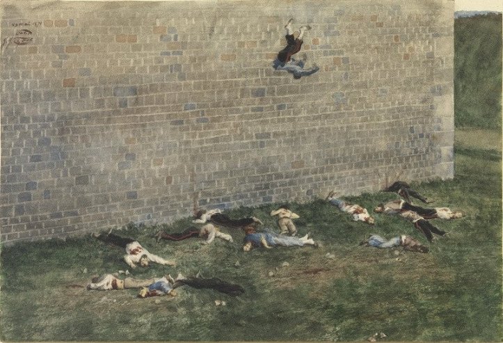 This was the end of an epic: the last act in the tragedy, fittingly enough celebrated by the victors by another murder. The fort that fell was the last fort of the Commune of Paris: the nine officers that were killed were the last remnant of the Communard Army. Days before the war had ended in Paris: and the flag that was run down at Vincennes was not to fly again for fifty years. The first struggle between the bourgeoisie and the workers was over and had ended in defeat for the latter.