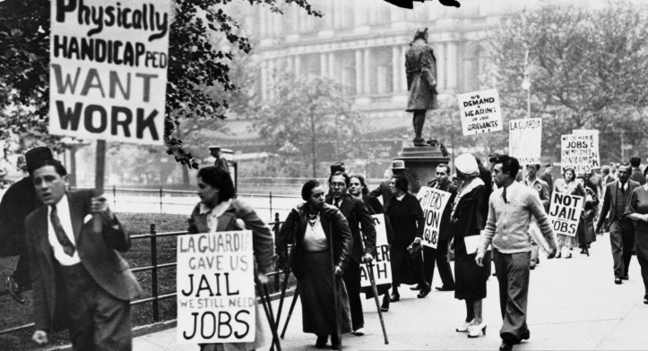 The New York press has been enjoying a field day of kidding. Something in the spectacle of the physically handicapped picketing the Work Relief Bureau, something about the crippled who hobble up and down before the entrance demanding work in place of charity, has prompted the newspapers to trot out their best in the way of sophisticated humor. Even The New York Times is facetious at the expense of those whose legs have been permanently twisted by infantile paralysis or tuberculosis, whose backs have been stiffened or whose limbs have been shortened and withered. The Times could not resist referring to the cases of the handicapped who have been arrested and brought into court as “the saga of the crippled pickets” and jokingly described the “tortured soul” of Magistrate Harris “impaled on the horns of a dilemma.”