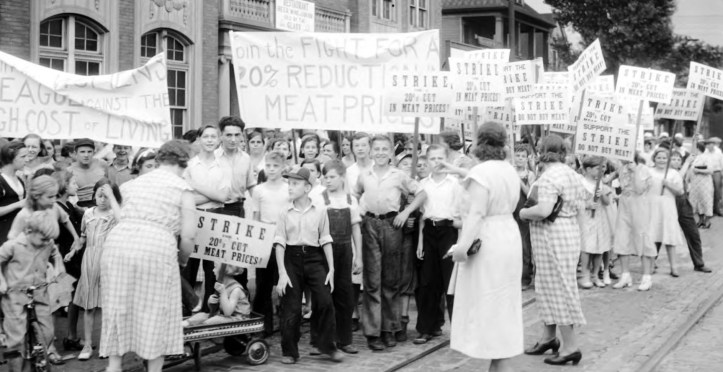 The first day of the strike was a tremendous success (even the bourgeois papers admitted this in their issues). After the first meat strike day in Hamtramck the movement spread all over Detroit. The Action Committee called upon the Detroit women to strike the following Friday and Saturday. First, action was taken in North Detroit, a district adjoining Hamtramck, where the militant picketing of Hamtramck housewives was duplicated and resulted in the closing of butcher shops. Additional communities in the suburbs–Dearborn, Lincoln Park, Delray, and other districts of Detroit—took action at the same time.
